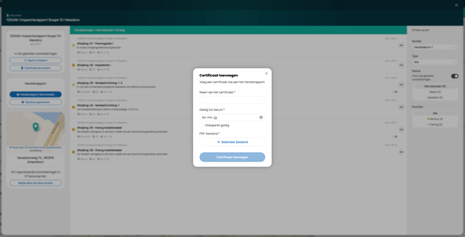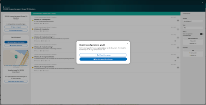Let op: het certificaat wordt niet opgenomen in de herstelrapportage.