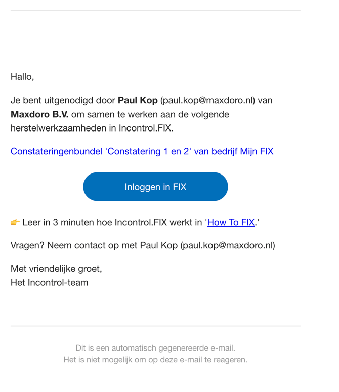 Een gastgebruiker is een externe persoon die toegang krijgt tot specifieke onderdelen van jouw organisatie in FIX. Denk aan een aannemer, partner, leverancier of klant die een locatie, document of constateringenbundel (bevindingen) moet bekijken of aanvullen. Gastgebruikers zijn de vervanging van de oude externe gebruikers.